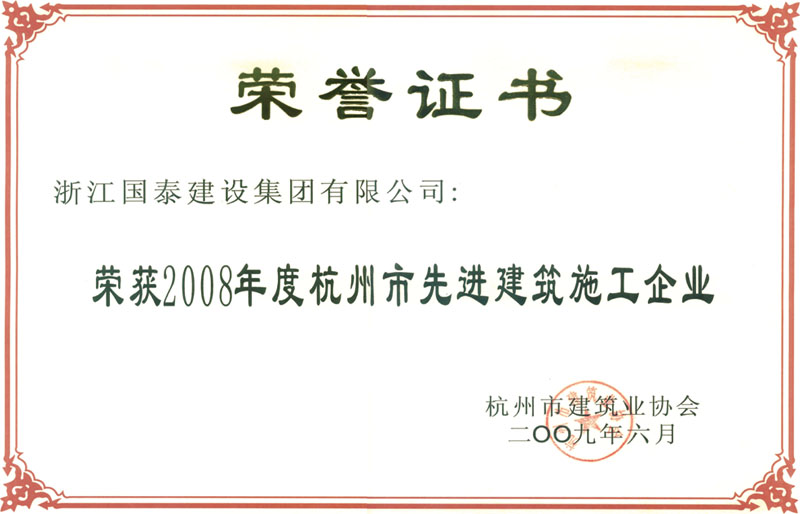 2008年杭州市先进建筑施工企业