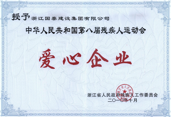 2010年第八届残疾人运动会爱心企业奖