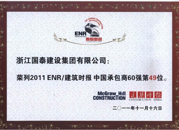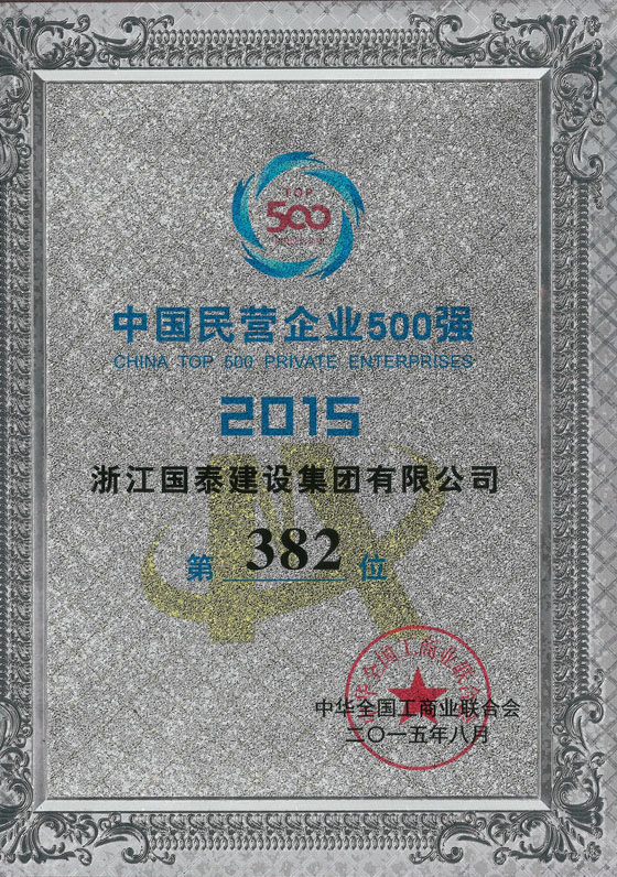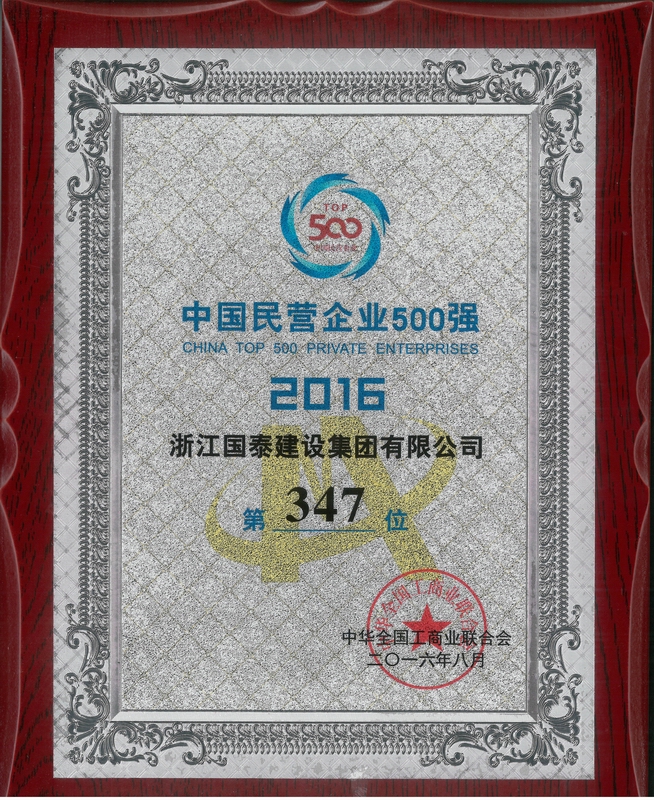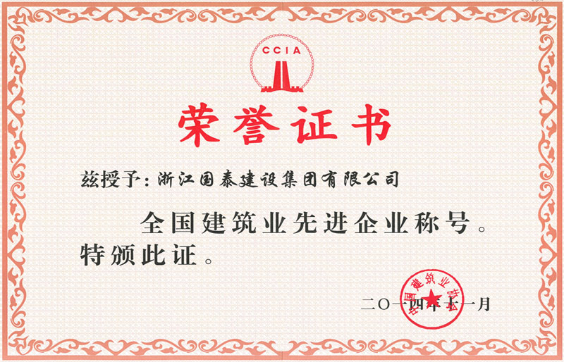国泰建设集团是中国建筑业协会质量委员会常任理事单位,公司被评为全国民营企业500强,全国建筑企业500强, 全国建筑承包商60强,全国安全生产管理先进企业,全国工程建设质量管理优秀企业,全国优秀领导施工企业,全国"守合同重信用"企业,全国建筑业先进企业。