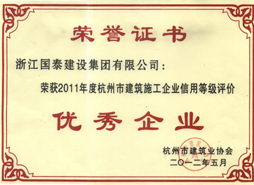 2011年度杭州市建筑施工企业信用优秀企业