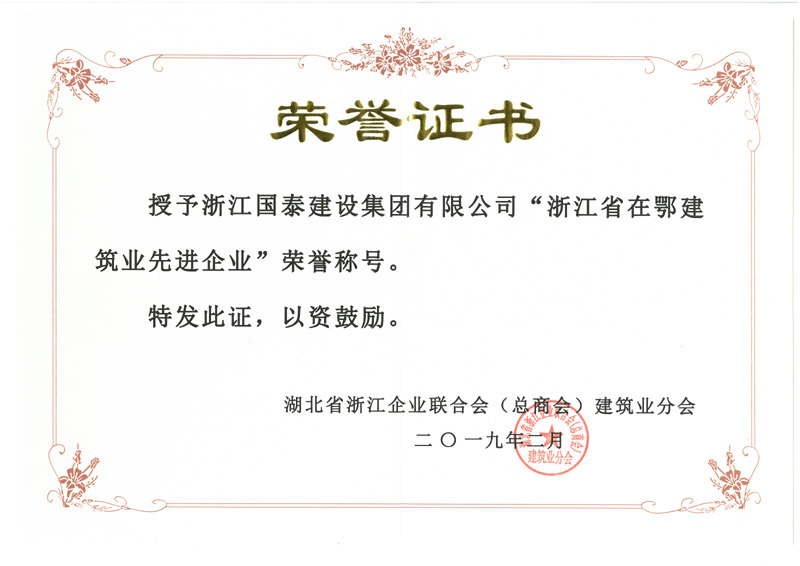 “浙江省在鄂建筑业先进企业”
