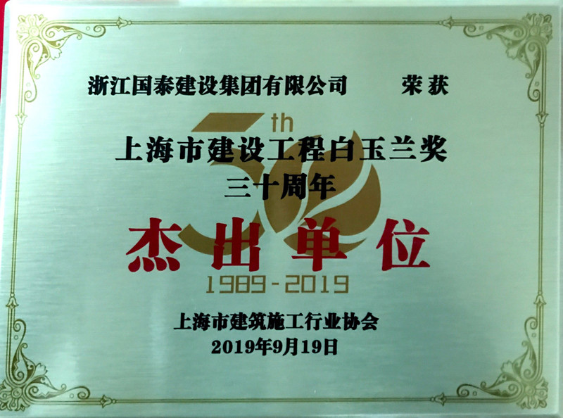 上海市建筑工程白玉兰奖三十周年杰出单位