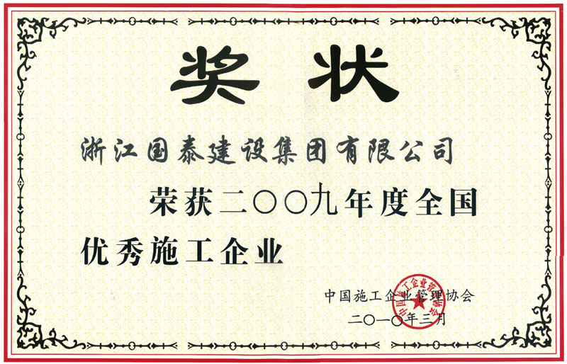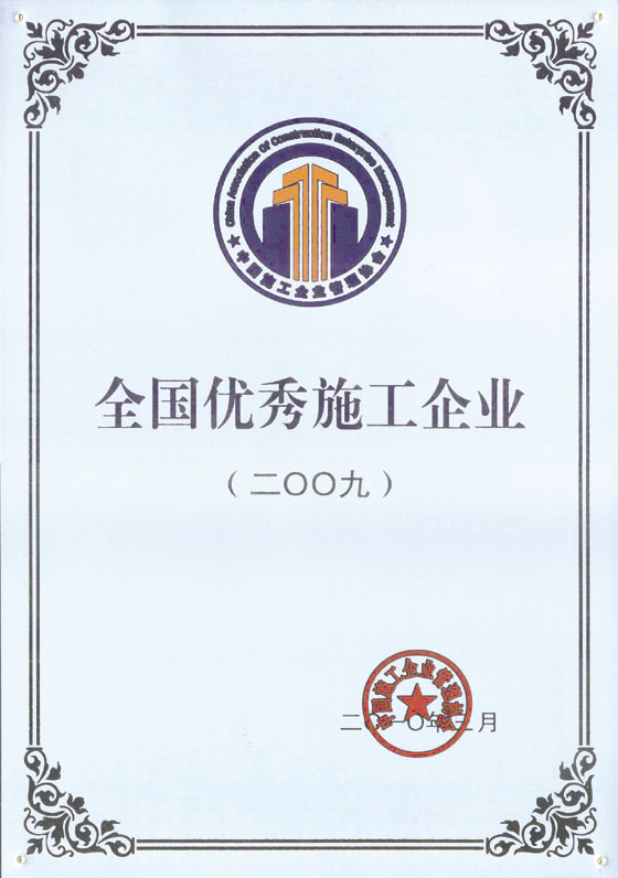 2009年全国优秀施工企业奖状