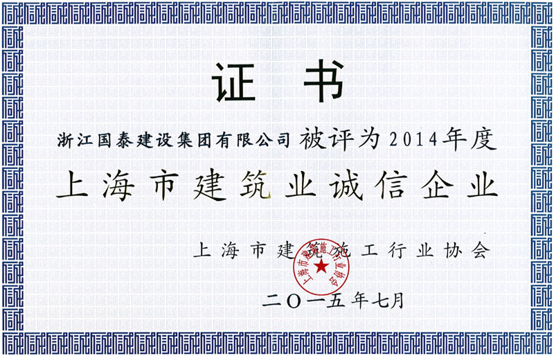2014年度上海市建筑业诚信企业