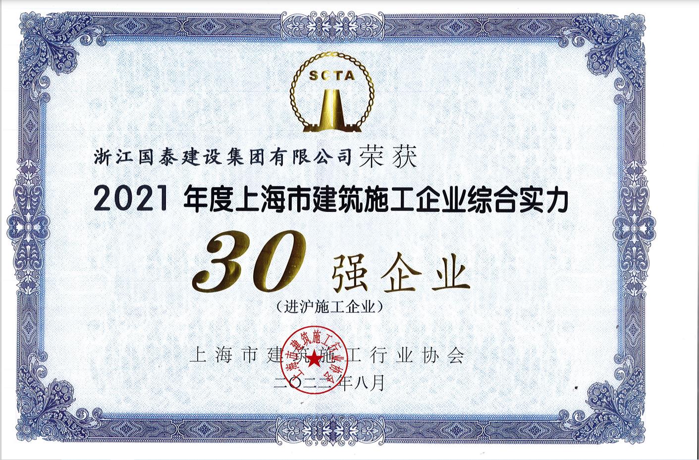 2021年度上海市建筑施工企业综合实力30强