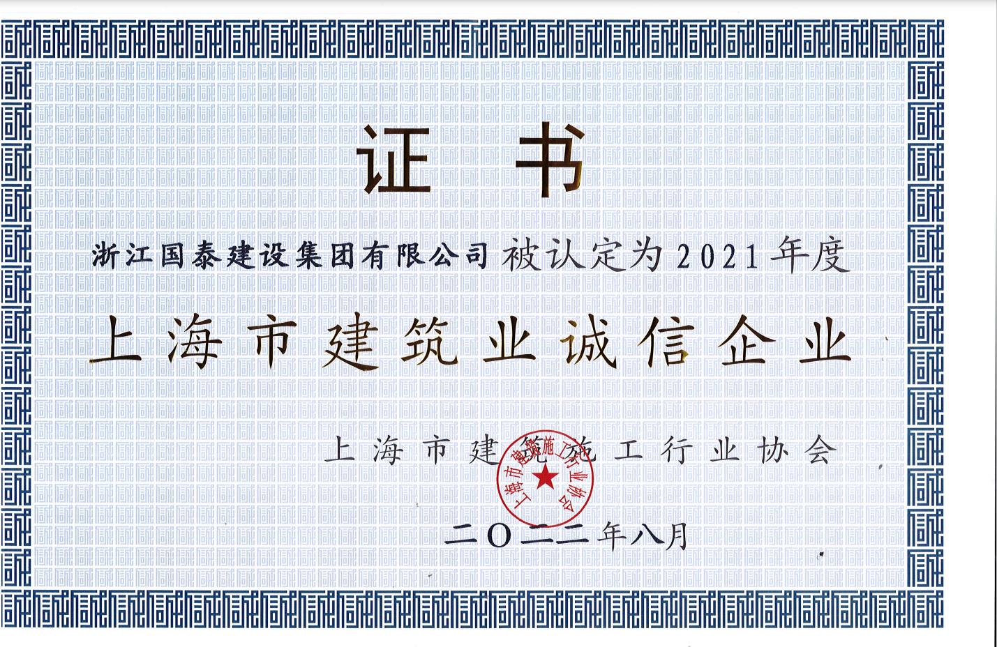 2021年度上海市建筑业诚信企业