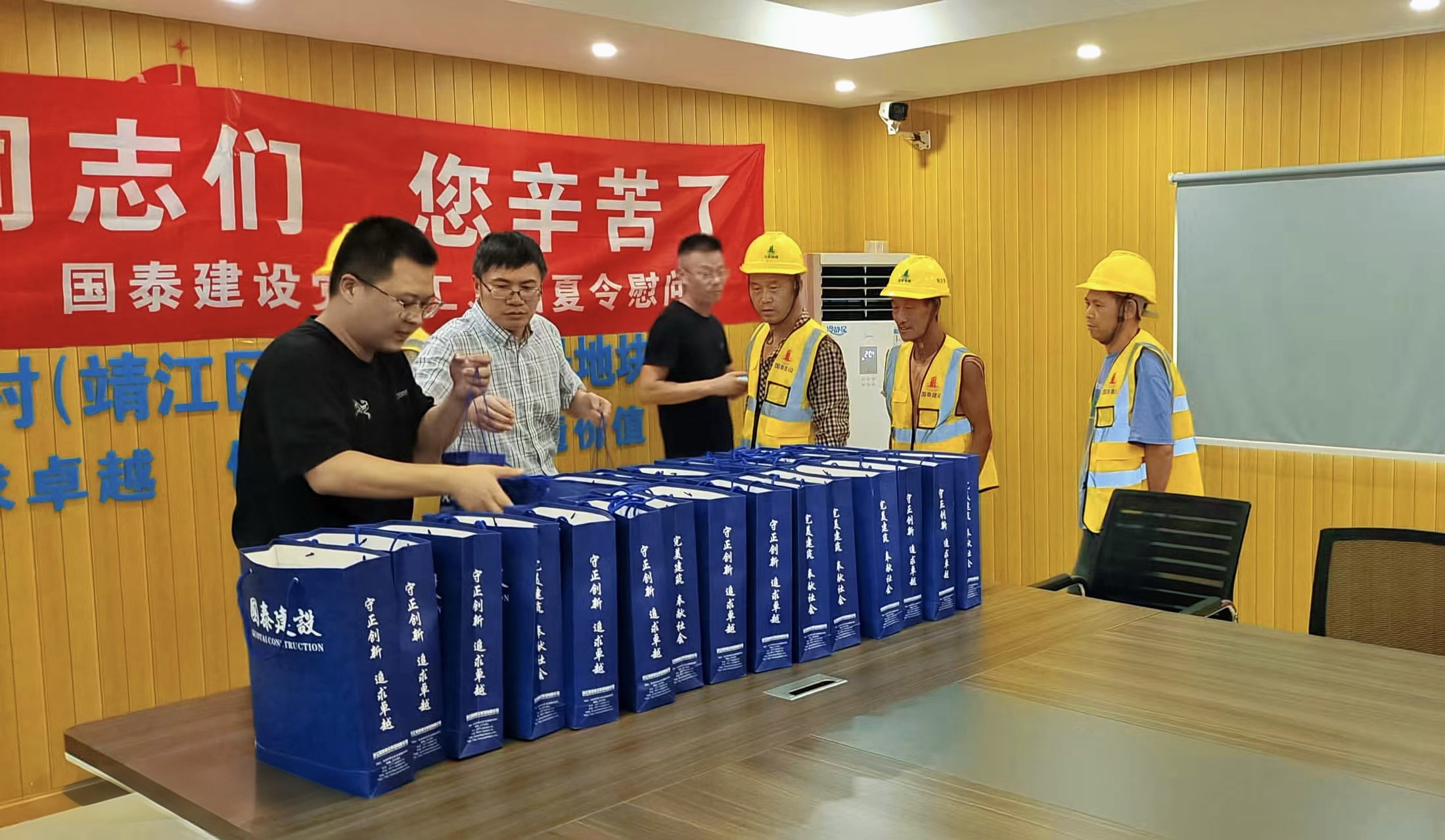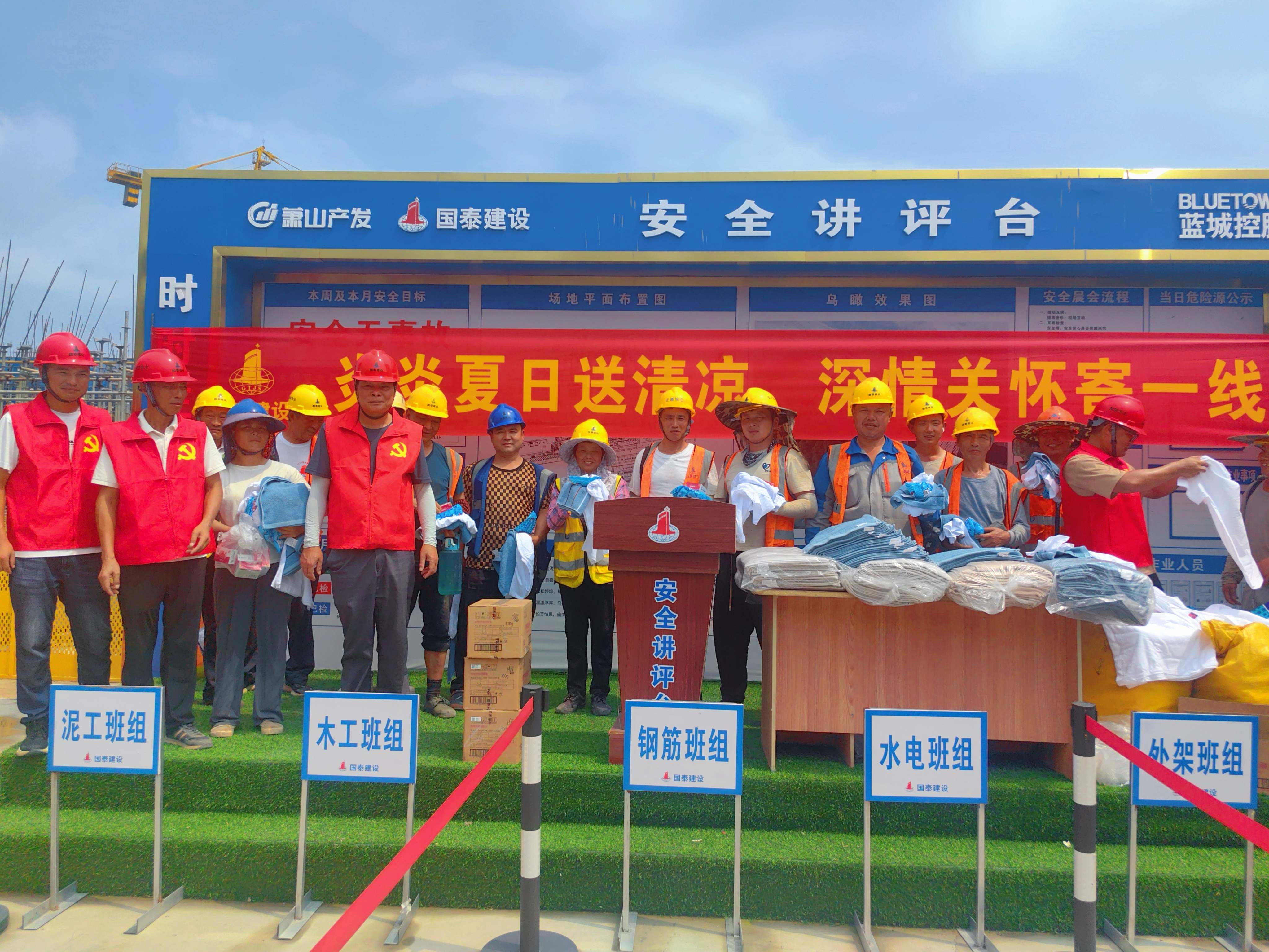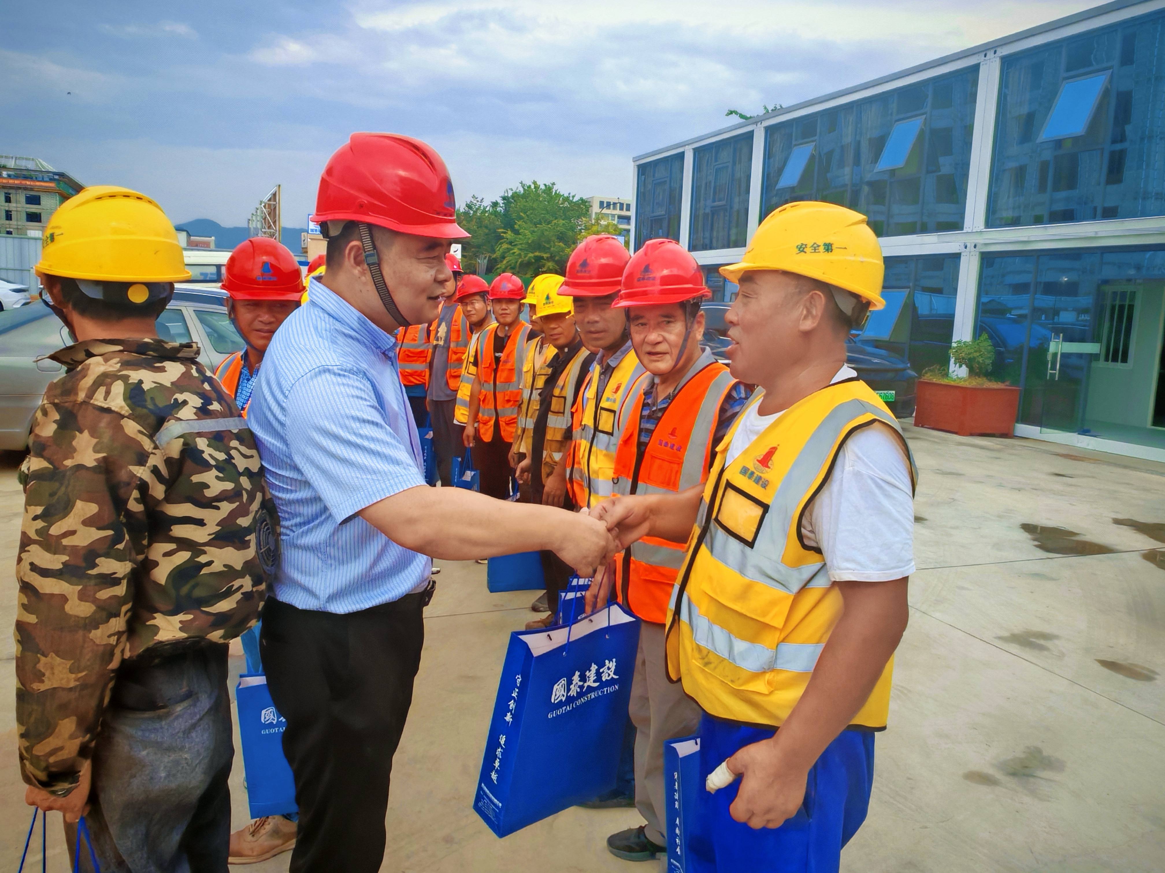 近日,国泰集团组织开展“夏日送清凉”慰问活动,向奋战在高温下的建设者送去防暑降温物资,为高温酷暑季节施工注入“凉”动力。
