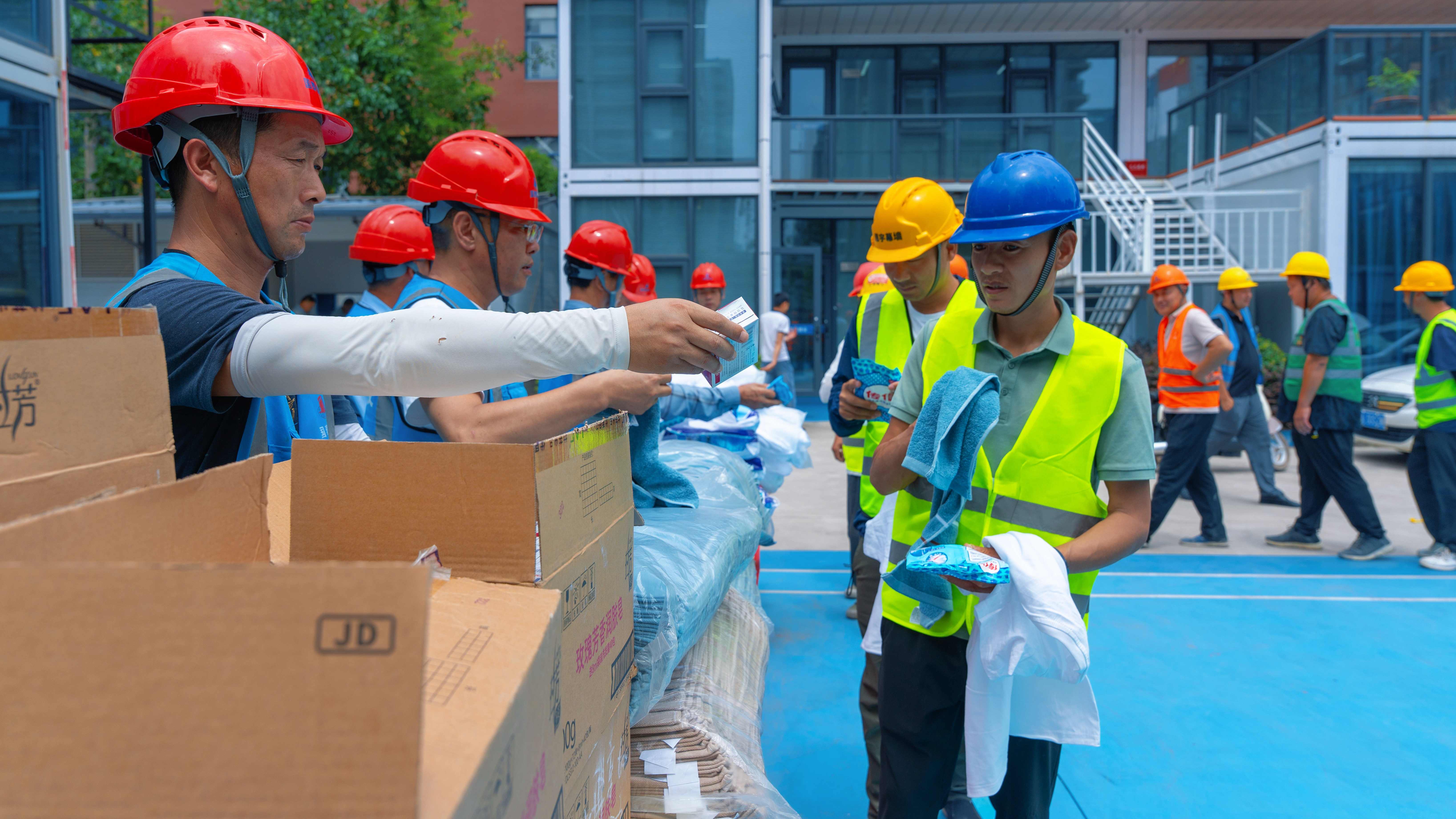 集团领导及工会主席分组带队深入施工现场,详细询问一线员工的工作生活情况,向坚守岗位的建设者们致以诚挚问候,并送上清凉饮料、防暑药品、毛巾等慰问品。