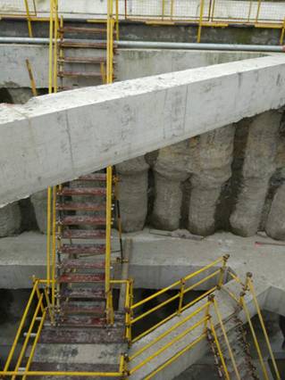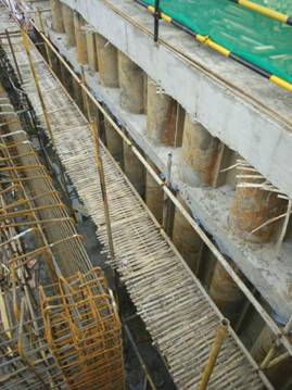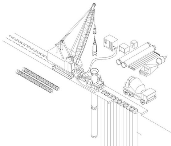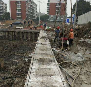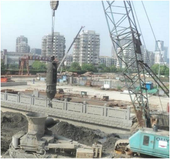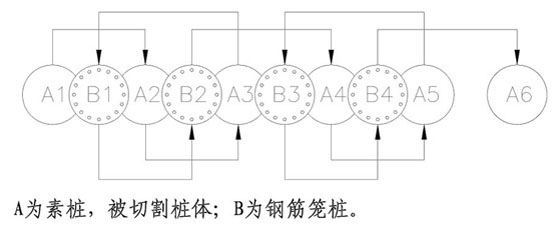 采用全套管桩机和超缓凝混凝土技术,先施工两侧的素混凝土桩(用超缓凝混凝土),在其初凝前施工完成中间的钢筋混凝土桩,中间钢筋混凝土桩采用全套管桩机切割掉相邻素桩相交部分的混凝土,使排桩间相邻桩相互咬合,共同终凝,形成无缝连续的"桩墙",达到挡土、止水、并保证施工安全的新型深基坑支护结构。该技术在浙能第二大厦、省人民大会堂地下车库等工程得到应用。