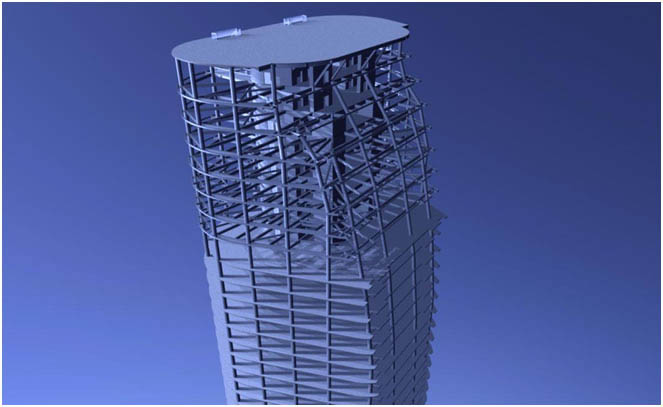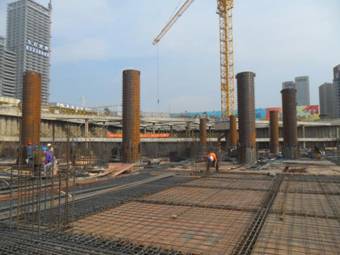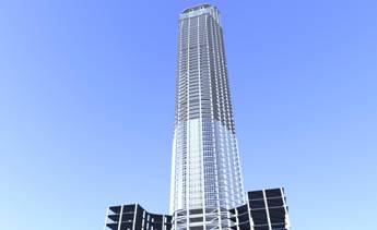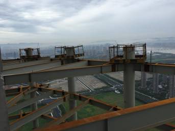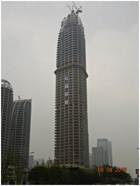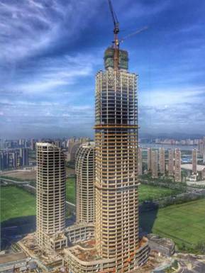萧政储出(2011)45号地块商业金融业、办公项目,塔楼上部主体57层,地下3层,建筑总高279.98m(室外地面至停机坪面);项目塔楼结构体系为核心筒结构,由钢管混凝土+钢梁+压型钢板楼板+钢筋混凝土核心筒组成。