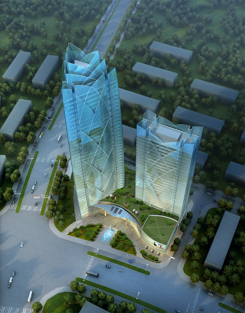 A座建筑物38层,高度149.95m,B座建筑物25层,高度99.75m