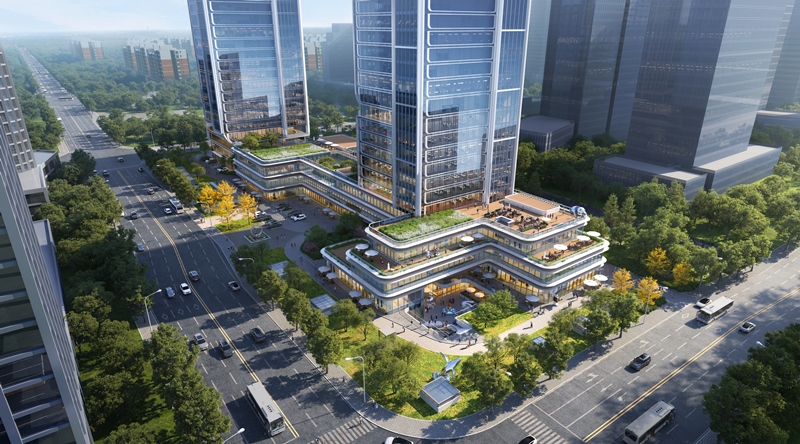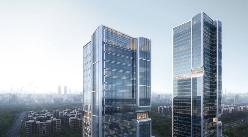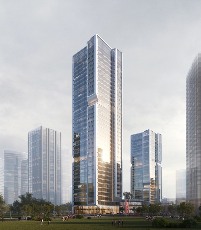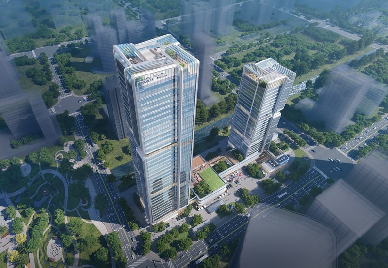 杭政储出[2024]51号地块项目位于地铁7号线与在建15号线交汇站东北角,总建筑面积150432.45m²,其中地下建筑面积49484.21m²,地上建筑面积100948.24m²。地下3-4层,地上由1幢38层超高层办公建筑、1幢28层超高层酒店以及2~3层裙房组成,现浇钢筋混凝土框架-核心筒结构,建筑最大高度188m。规划打造市北“双子塔”、板块新地标。